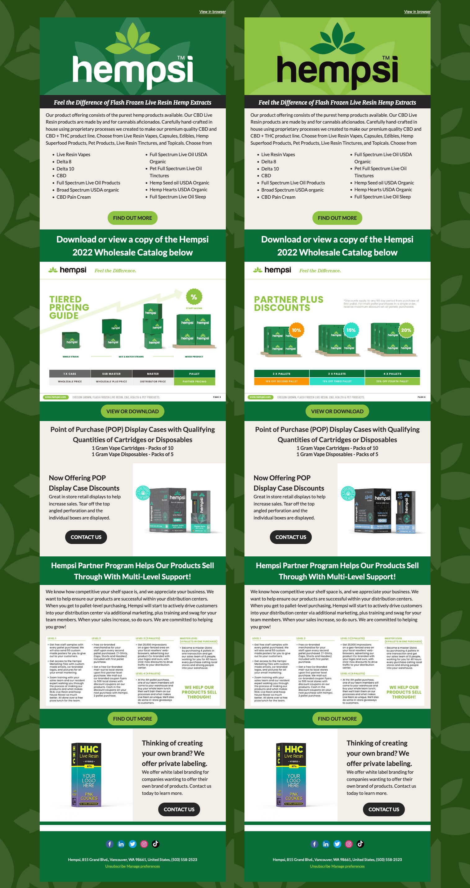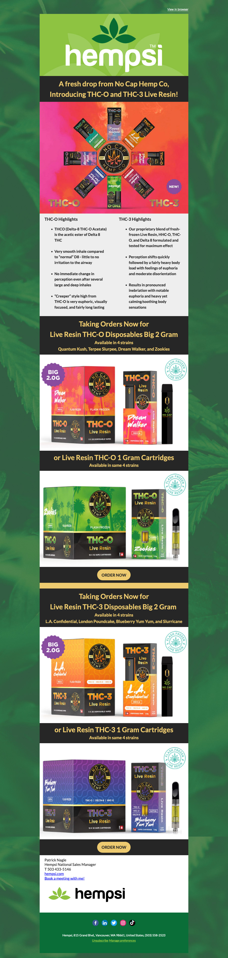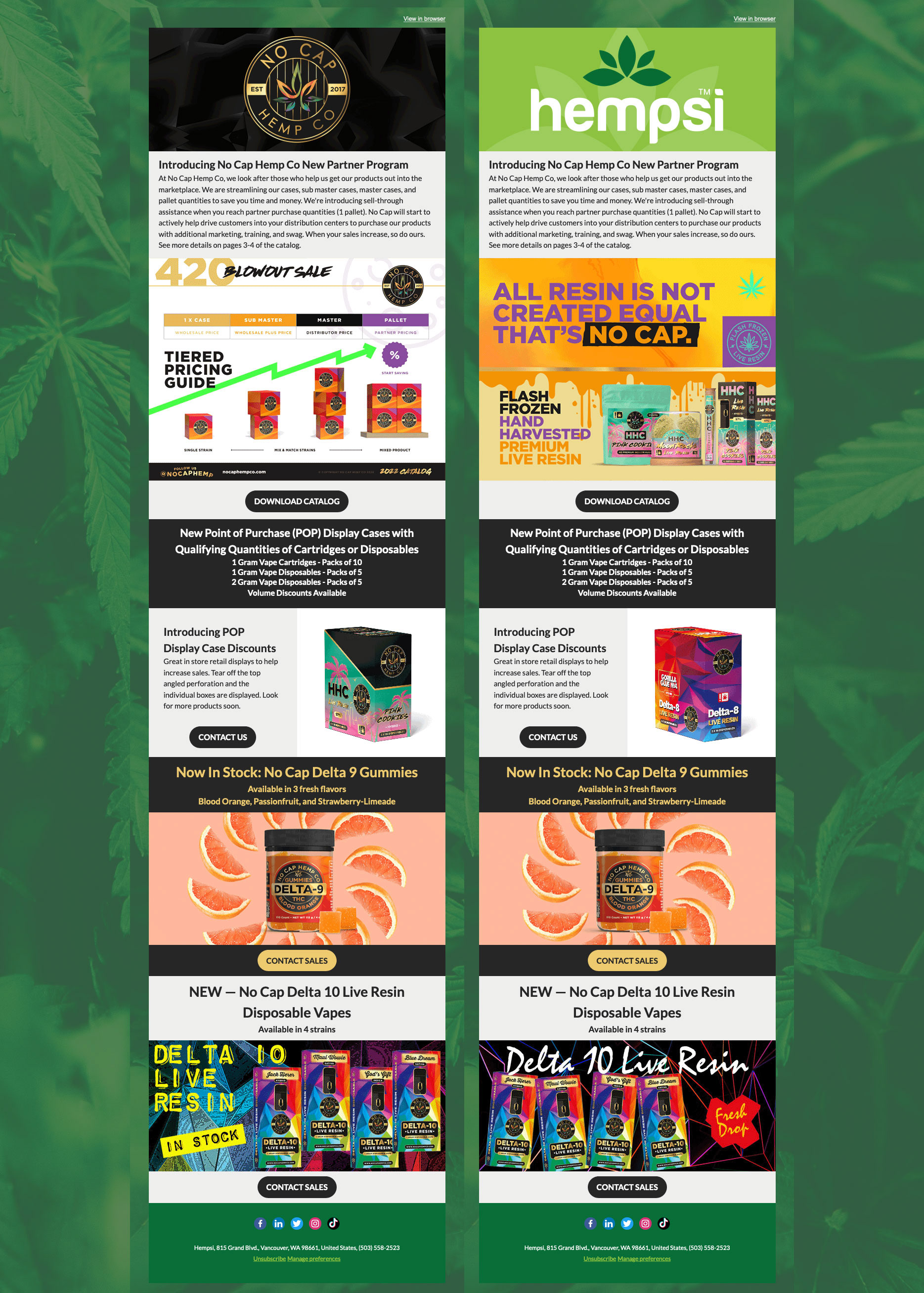 Business to Business Emails created in HubSpot for Hempsi and No Cap Hemp Co