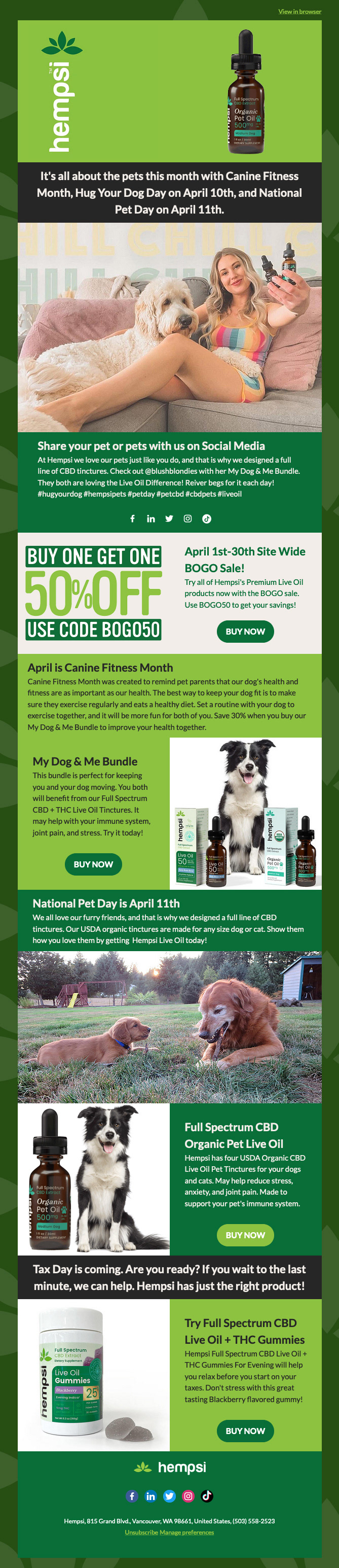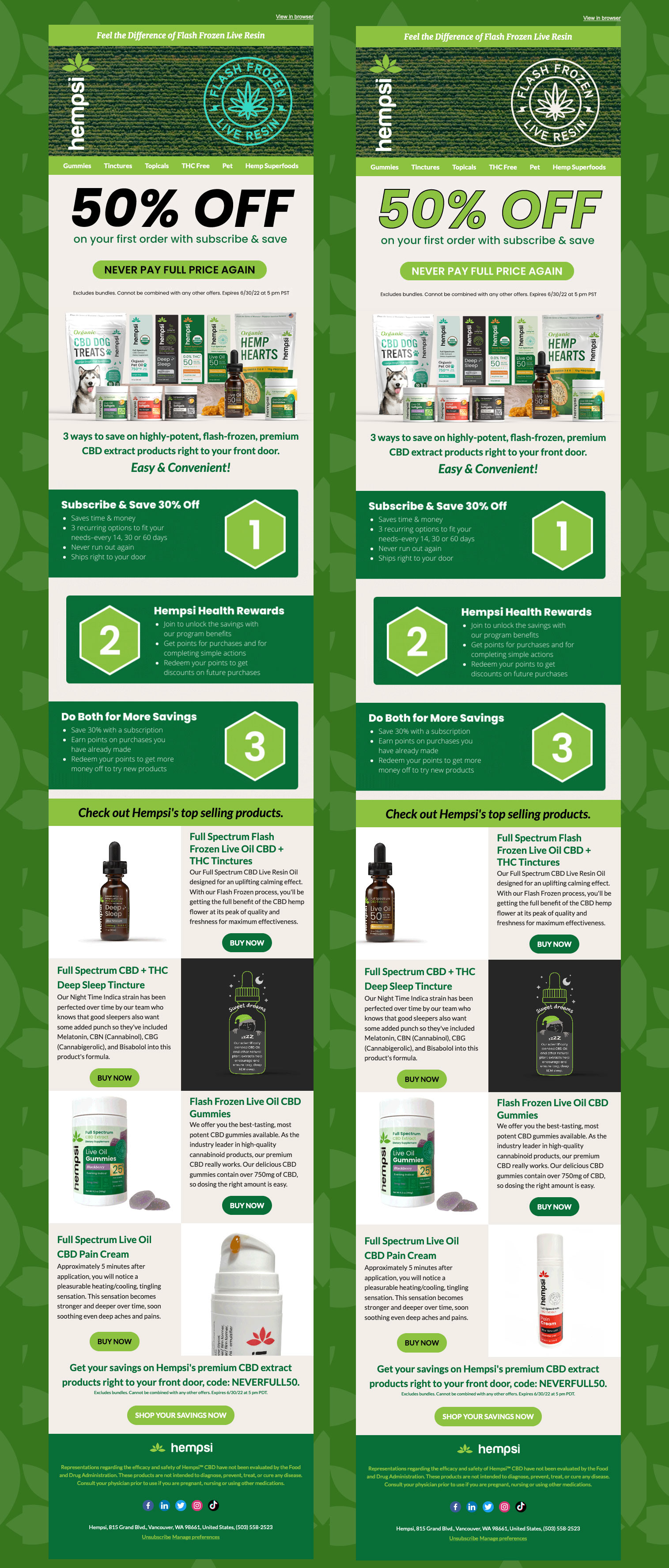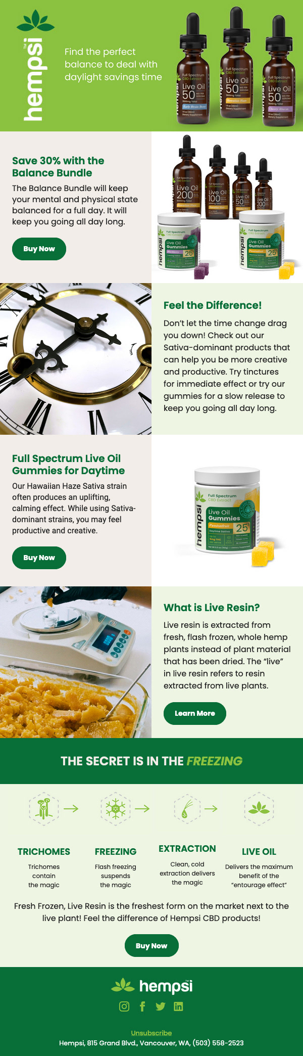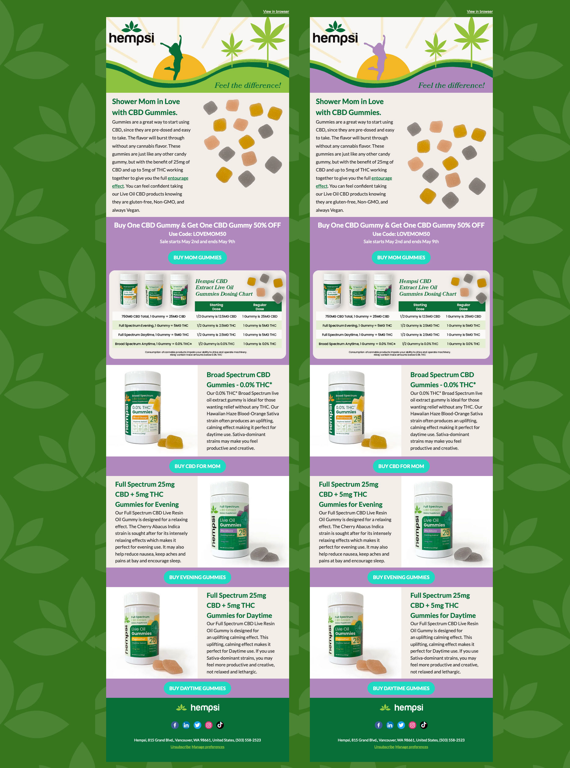 Direct to Consumer Emails created in HubSpot for Hempsi