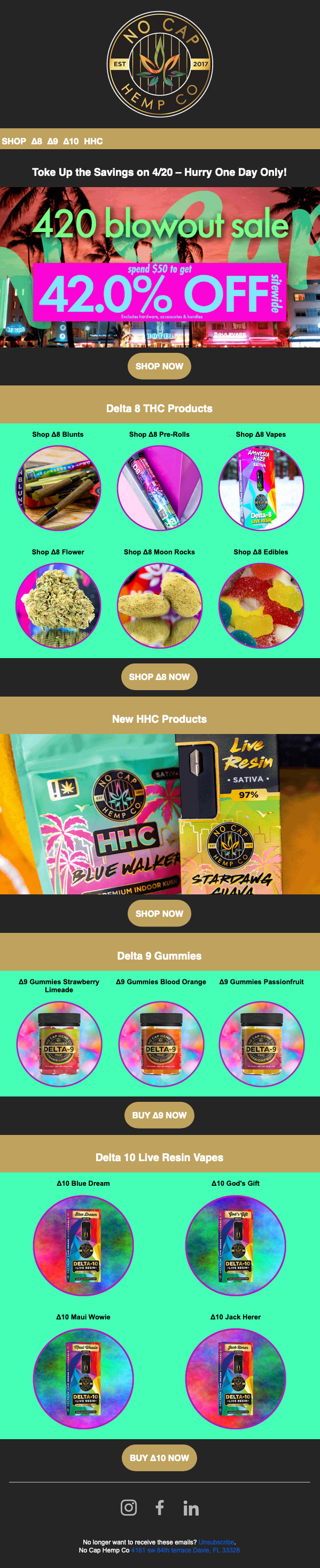 Direct to Consumer Emails created in HubSpot for No Cap Hemp Co